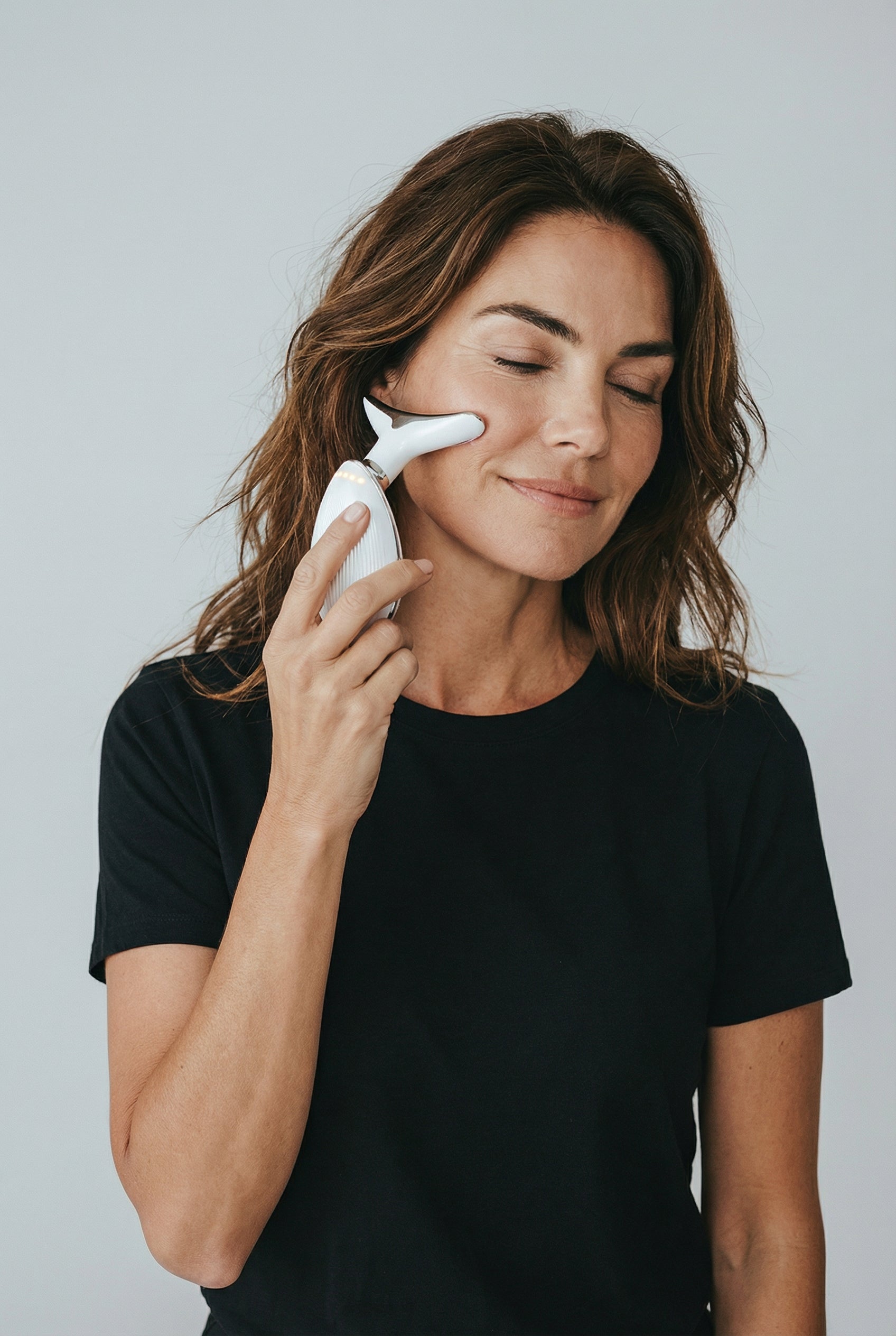 Mikrovibrationen, Wärmefunktion und intelligente Stimulation sorgen für sichtbar straffere, glattere und strahlendere Haut – ganz einfach von zuhause.